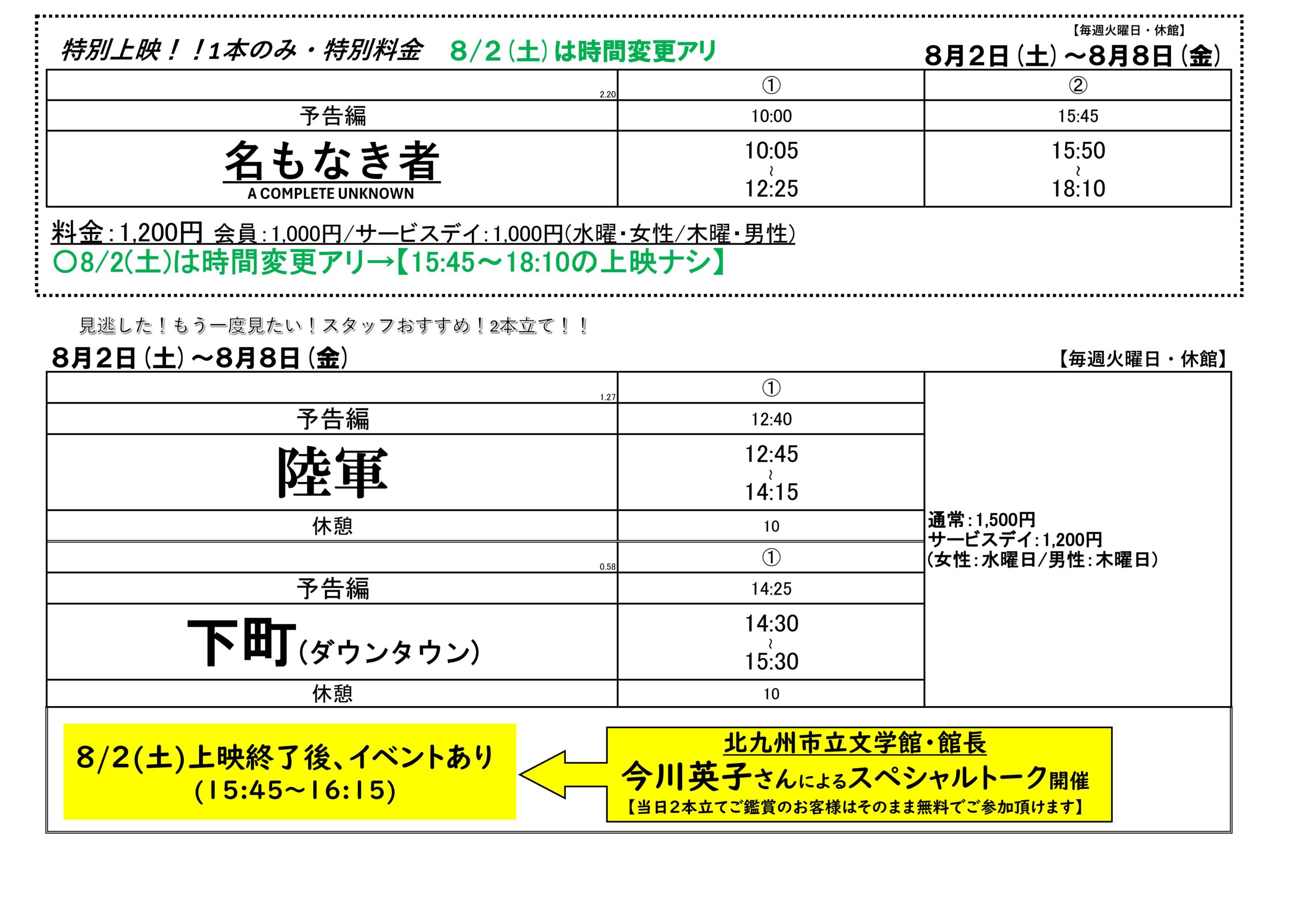 | 【第2週目】8/2(土)~8/8(金) | 8/2(土)は②15:45~18:10の上映ナシ |
