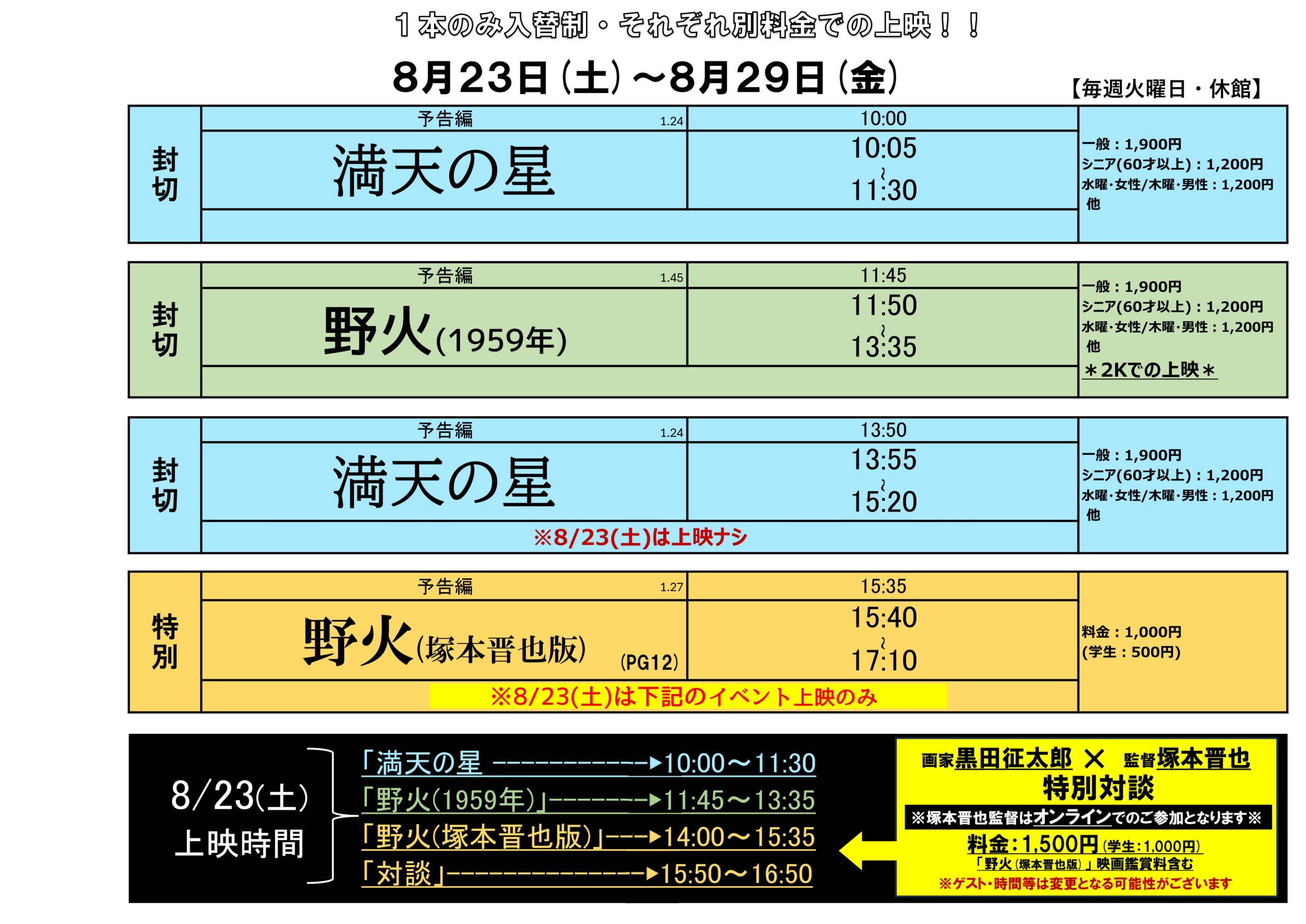 8/23はイベント上映のみ(時間変更アリ)