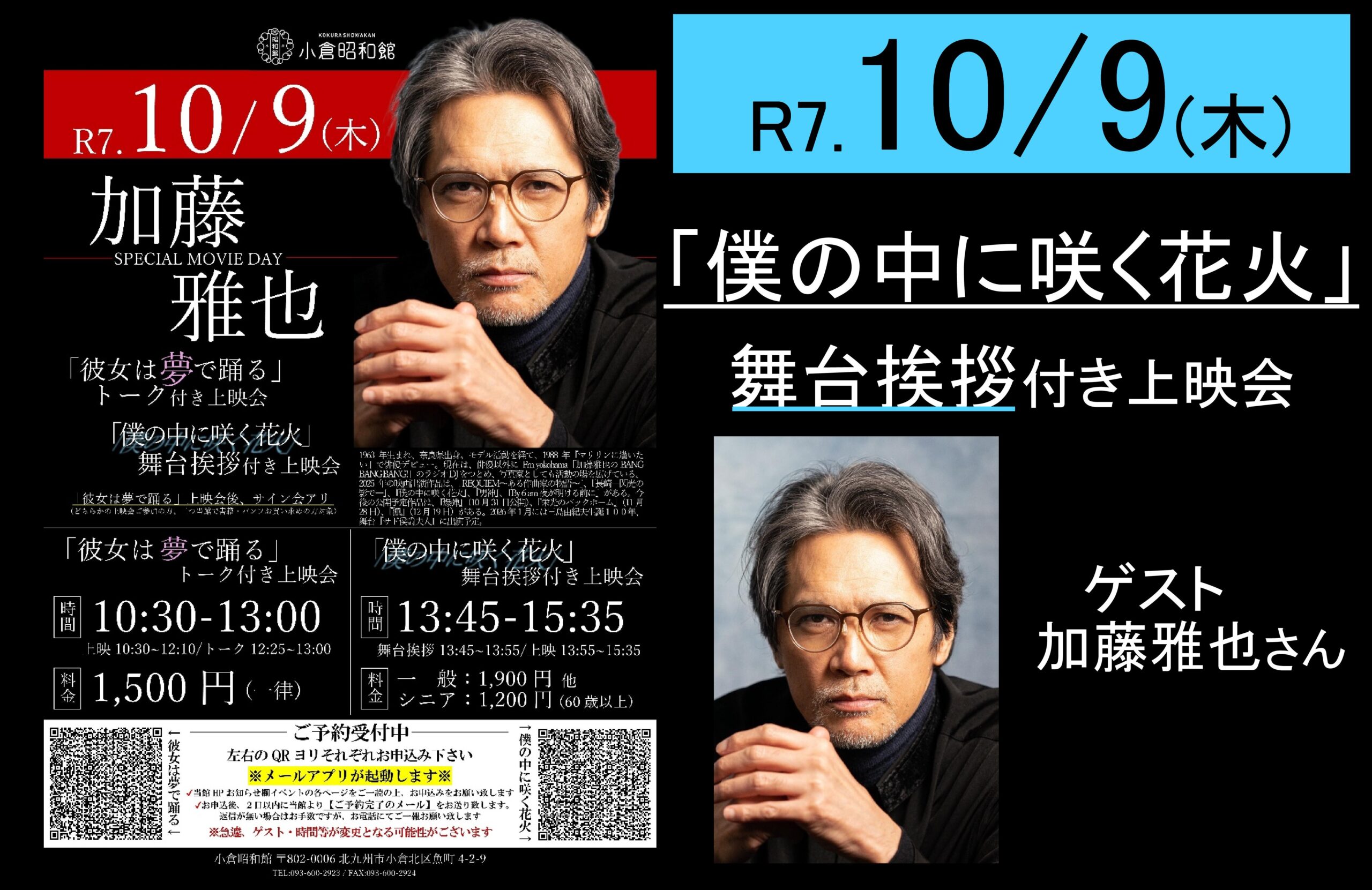 10/4(土)~10/10(金)にて当館上映予定「僕の中に咲く花火」に合わせまして、ご出演されている加藤雅也さんによる舞台挨拶を開催!!