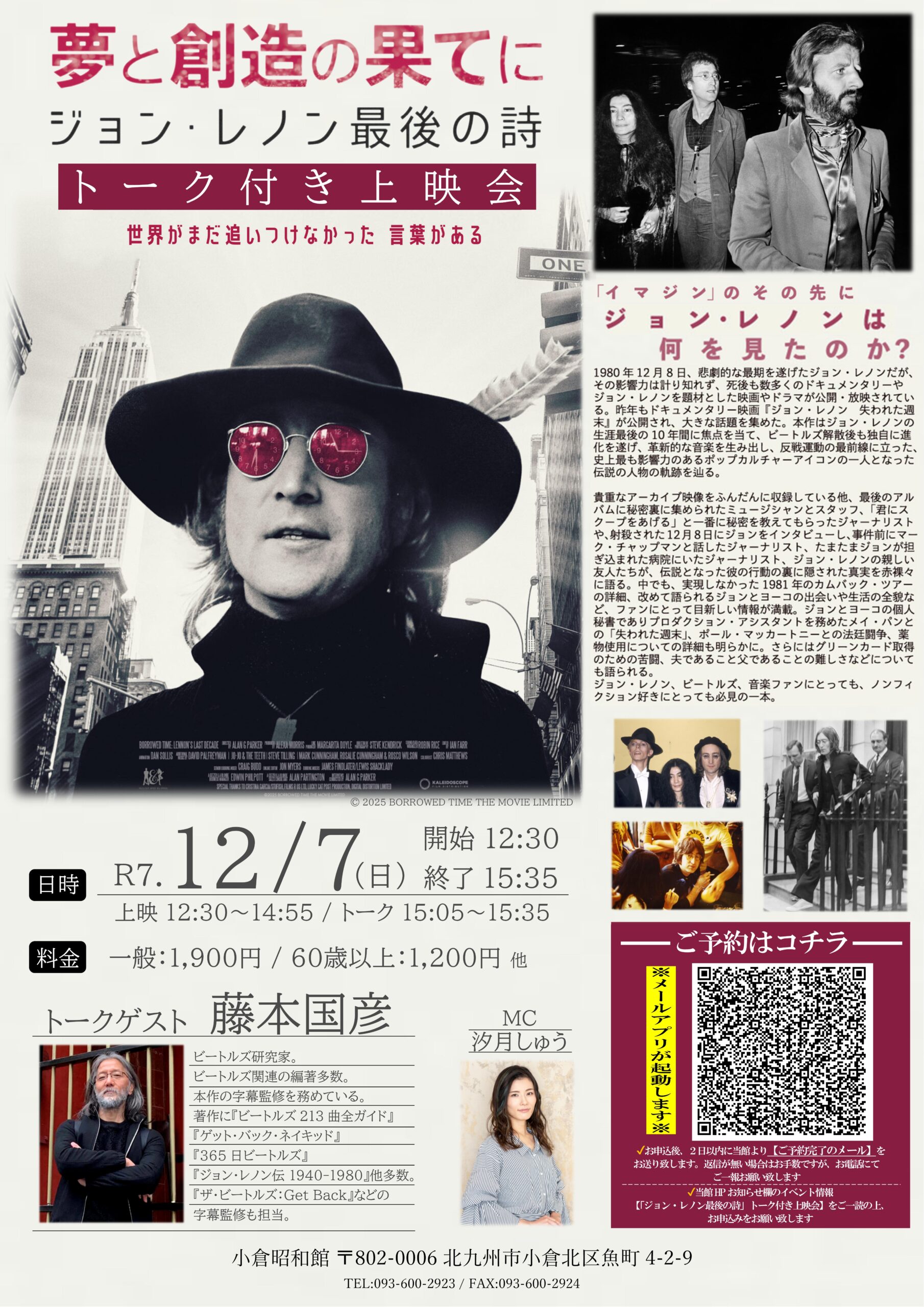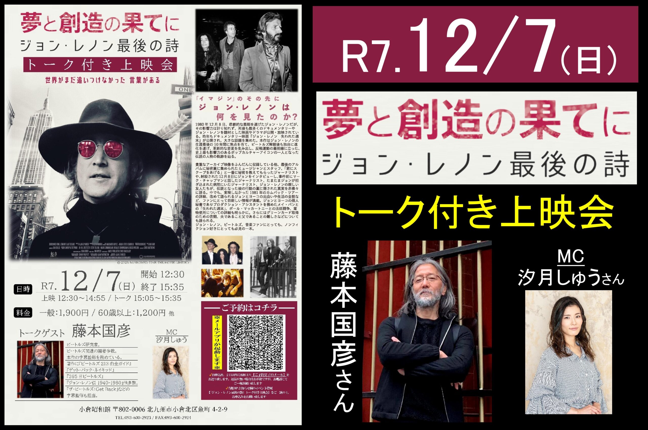 当館にて上映予定「夢と創造の果てに ジョン・レノン最後の詩」に先立ちまして、アフタートーク付きの上映会が決定!!