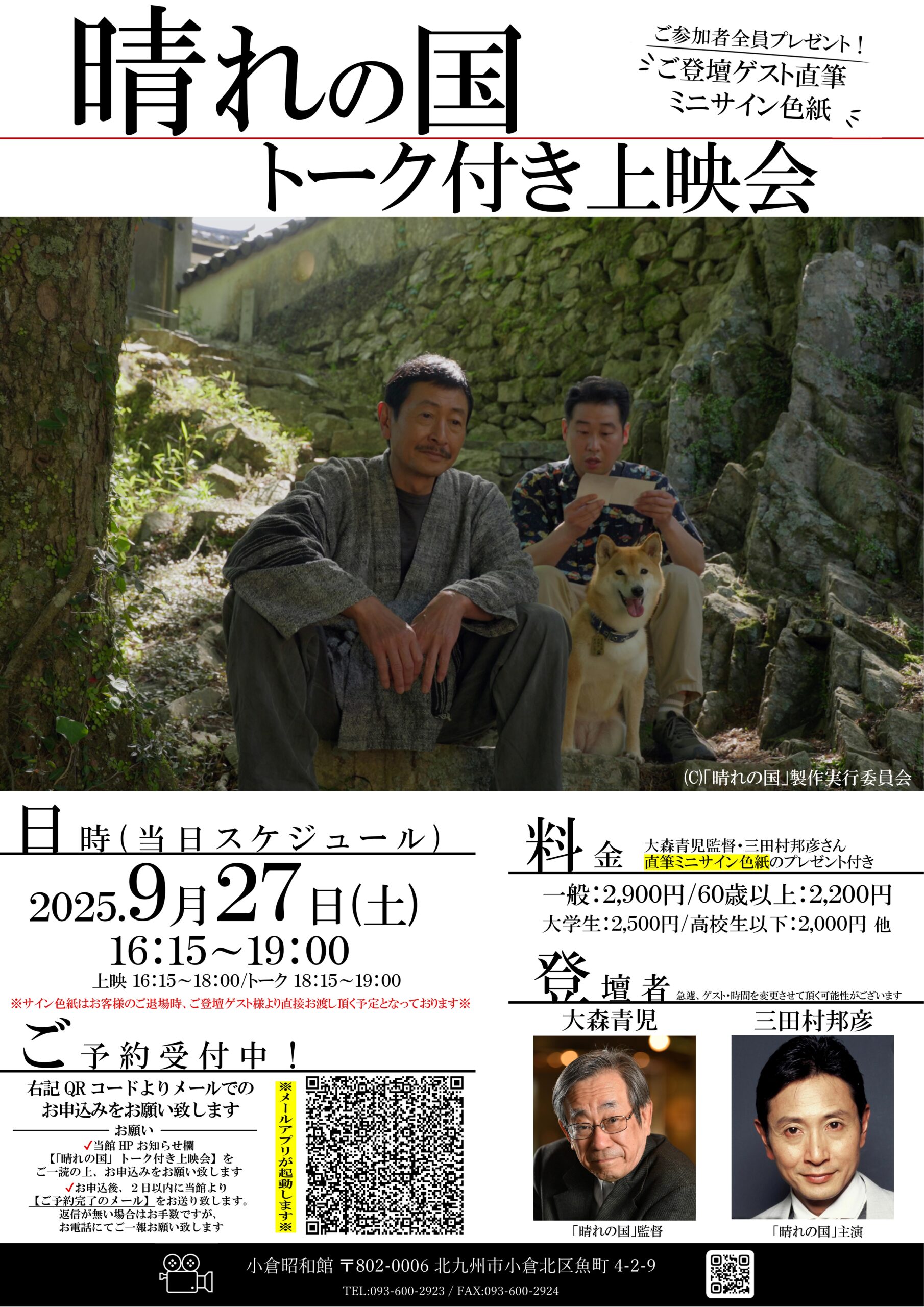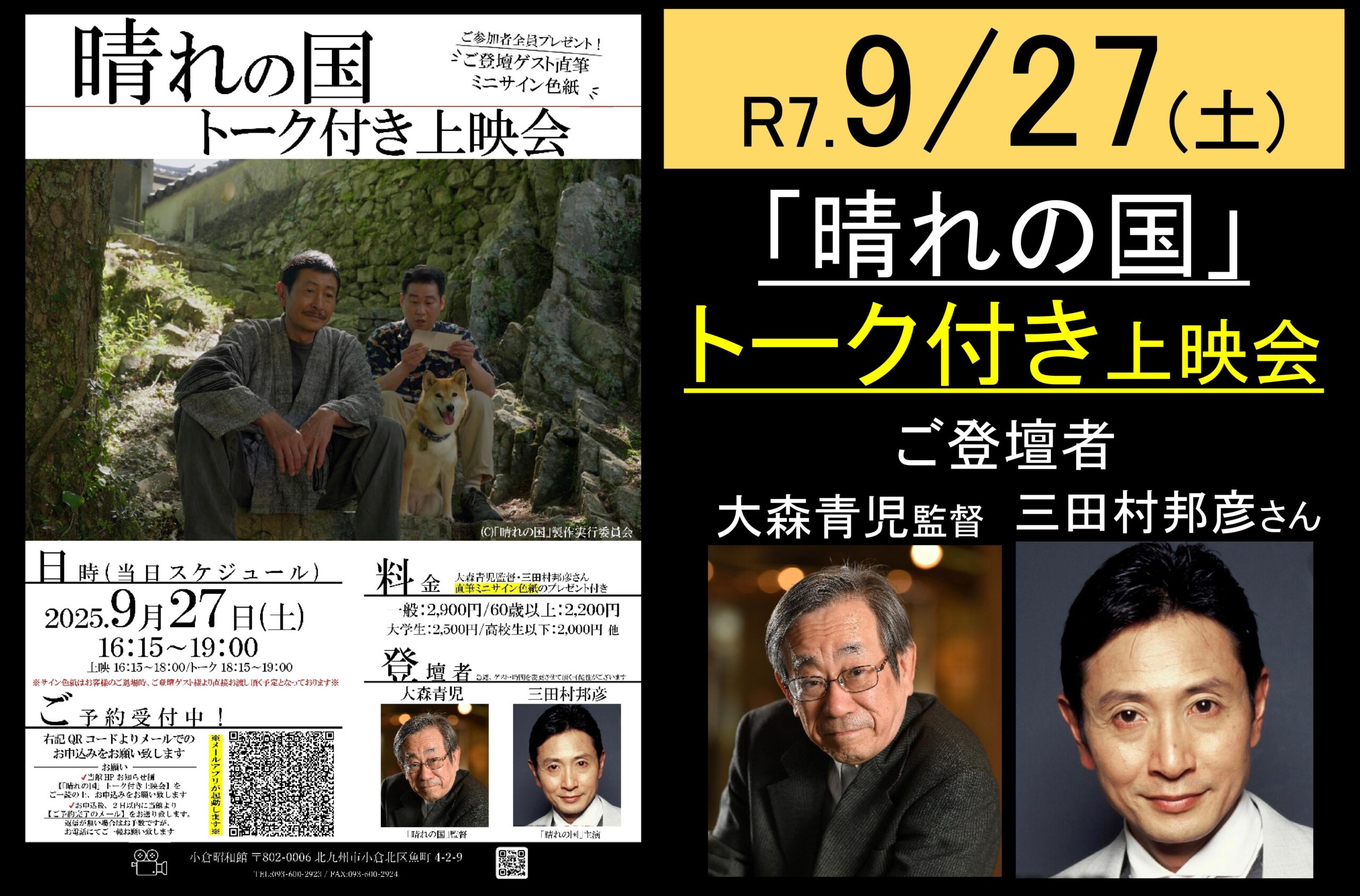 R7.9/27(土)【「晴れの国」トーク付き上映会】ゲスト:大森青児監督/三田村邦彦さん