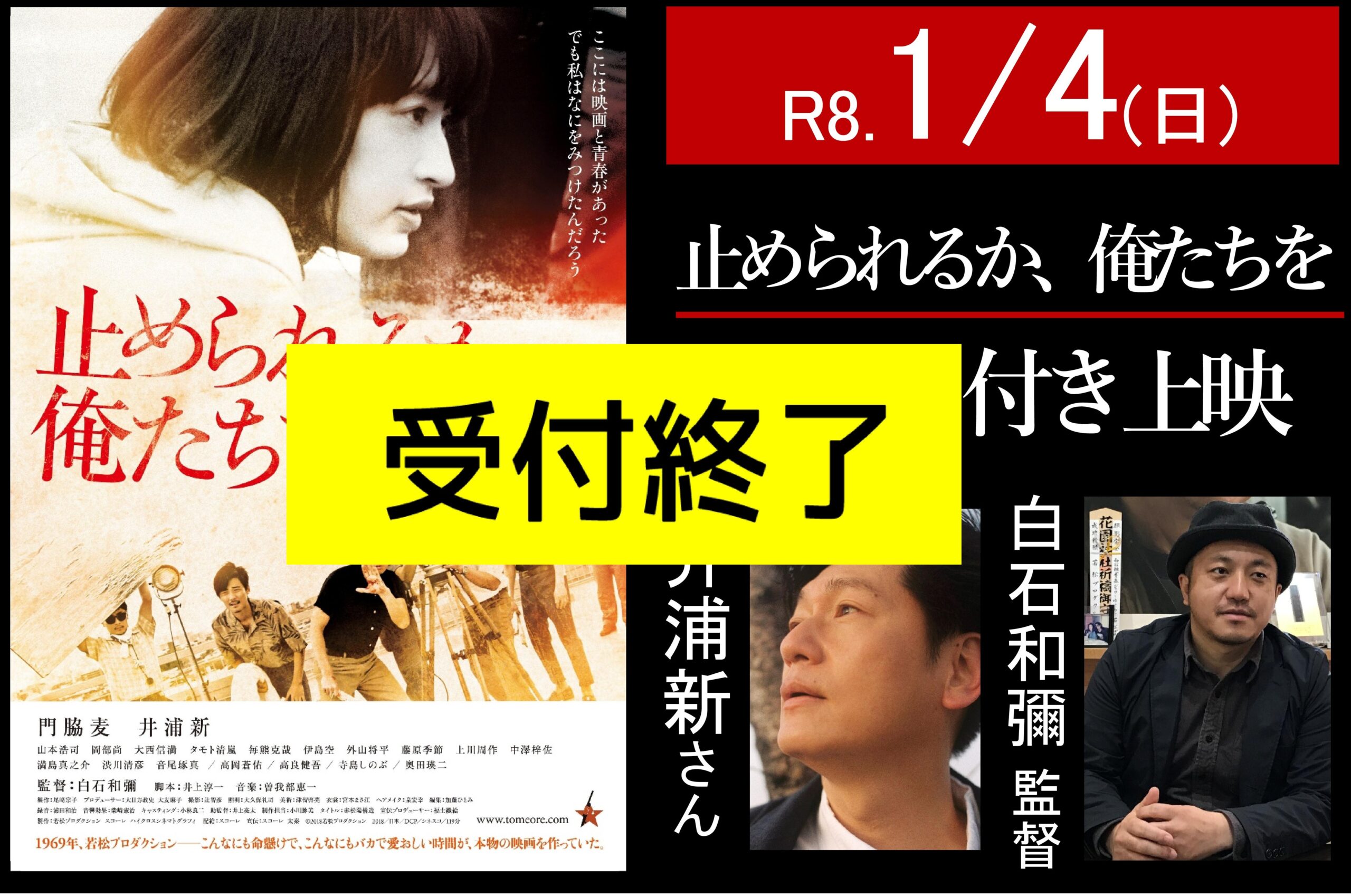 【受付終了】R8.1/4(日)【「止められるか、俺たちを」トーク付き上映】(井浦新さん/白石和彌監督)