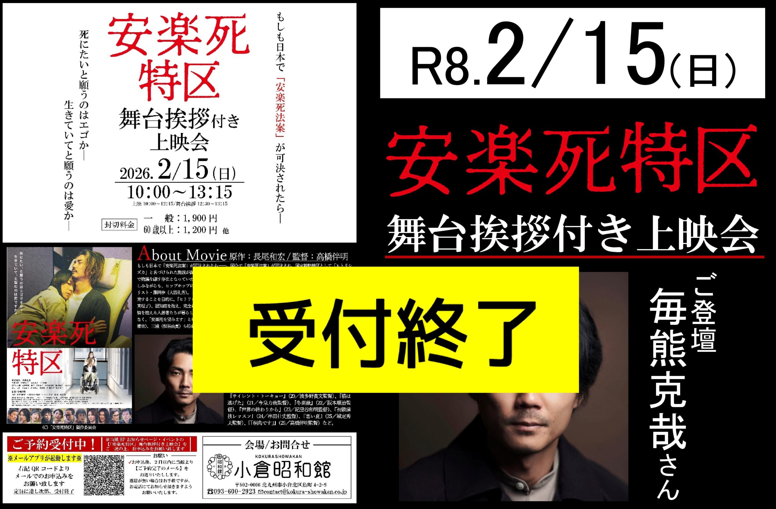 R8.2/21(土)からの「安楽死特区」上映に先立ちまして、R8.2/15(日)にて舞台挨拶付き上映会を開催!