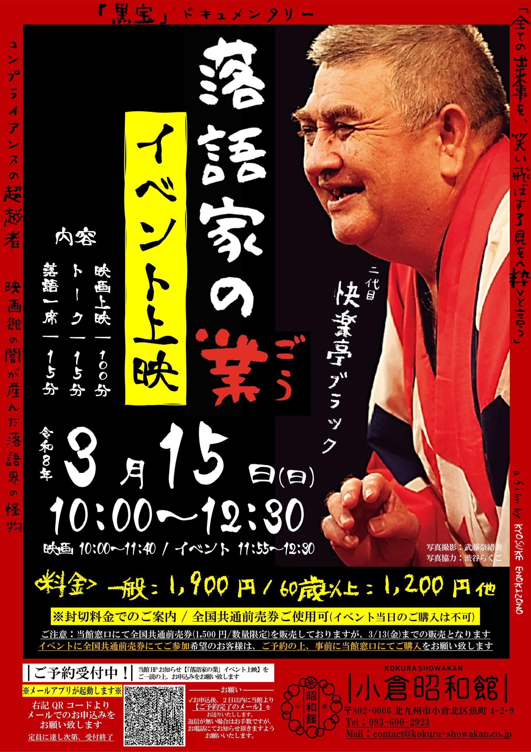 R8.3/14(土)~3/20(金)にて上映の「落語家の業」の上映に合わせまして、3/15(日)にイベント上映を開催!