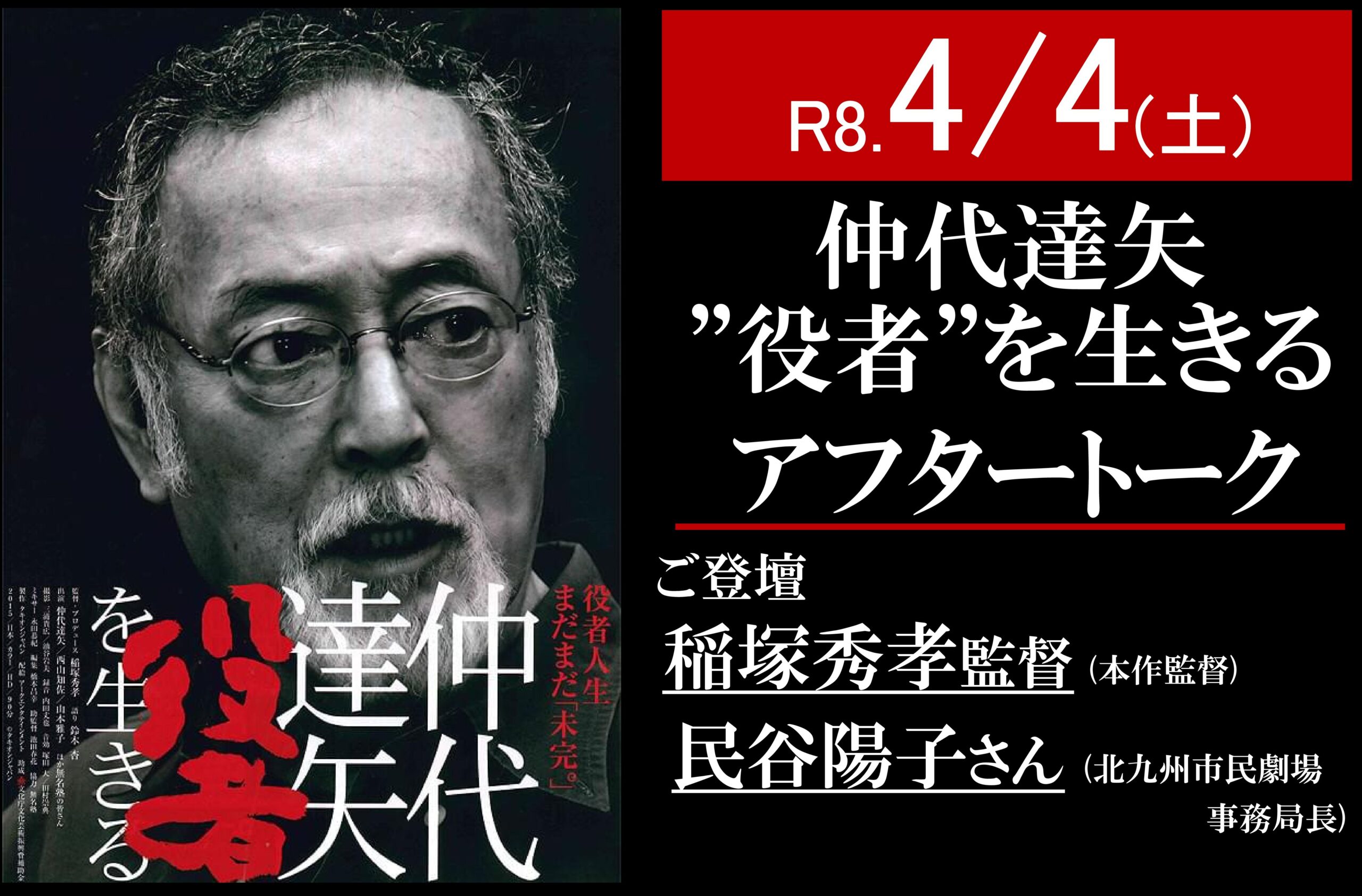 R8.4/4(土)より上映の「仲代達矢”役者”を生きる」の上映に合わせましてアフタートーク付き上映を開催!